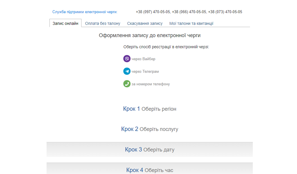4. Обрати зручний спосіб реєстрації в електронній черзі: через вайбер, телеграм чи номер телефону.