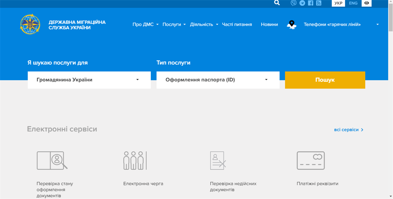2. Обрати «Послуги для громадян України» або «Послуги для іноземців».